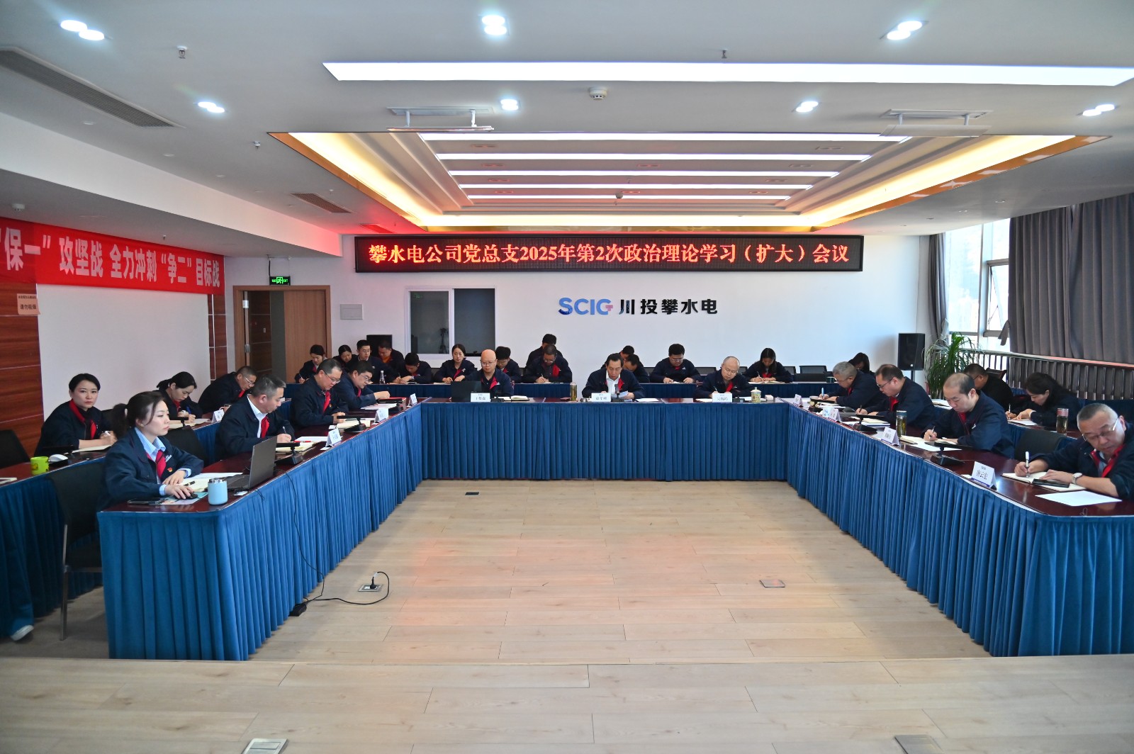 为深入学习贯彻习近平总书记近期重要讲话精神和省委省政府及上级单位相关会议精神,树牢安全环保意识,加强法治和廉洁教育,攀水电党总支于2月26日召开了2025年第2次政治理论学习(扩大)会议,会议由足球彩票副总经理、攀水电公司党总支书记、董事长徐孝刚主持,公司党员、统战对象、入党积极分子共30余人参加学习。