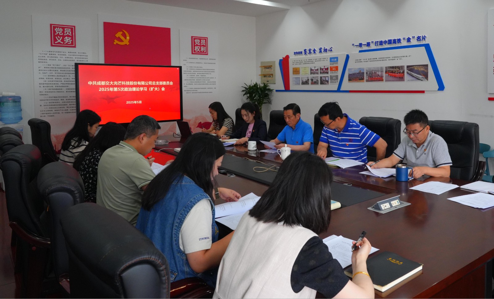 5月26日,交大光芒党总支召开2025年第5次政治理论学习会。会议由党总支书记、常务副总经理王涛主持,党总支委员、经营班子成员以及各支部委员、党群工作部、纪检工作部负责人参加学习。