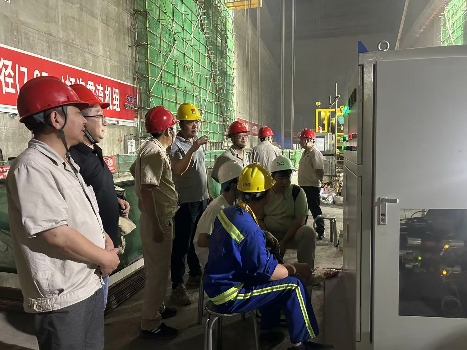 2025年攀枝花汛期比往年来的更早一些,为保障银江水电站顺利度汛和后续机组顺利安装,5月31日3号机组必须完成开机启动,具备过流条件。为此,进入5月以来,公司带领各参建单位日夜奋战在施工现场,实行公司领导承包划片进行工作督导,施工现场经常深夜还能看见公司领导现场忙碌的身影,经过不懈努力先后完成了3号机组主机、辅机、调速器、机组油、气和水系统、计算机监控系统、励磁系统、继电保护系统等设备的安装调试工作。5月30日随着尾水事故闸门充水阀缓慢打开,3号机组流道开始充水,5月31日检查灯炮体、管形座、流道盖板、导水机构及各排水阀等各部位正常,3号机组各系统单体、联调正常,随着指挥长徐孝刚一声令下,3号机组手动启动,并成功升速至100%额定转速,机组振动、摆度、瓦温等各项指标优良,机组运行状态稳定,首次启动成功。