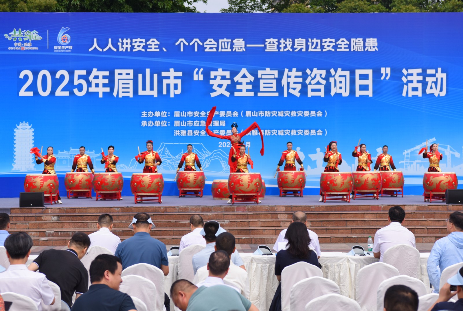 此次活动以“人人讲安全、个个会应急——查找身边安全隐患”为主题,吸引了众多市民踊跃参与。活动当日,洪雅新广场上人头攒动,热闹非凡。大鼓舞队的队员们身着鲜艳的服装,精神抖擞地登上舞台。随着音乐的响起,队员们挥动手中的鼓槌,以磅礴的气势、整齐的节奏敲响大鼓。激昂的鼓声瞬间点燃了现场气氛,赢得了台下观众的阵阵掌声和欢呼声。