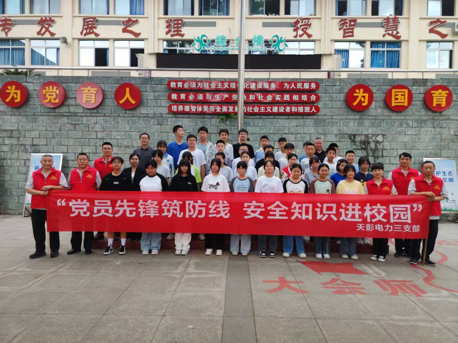 在全国第24个“安全生产月”活动蓬勃开展之际,为深入贯彻习近平总书记关于安全生产工作的重要指示精神,强化党员安全责任担当,6月18日,天彭电力党总支携手彭州市龙门山学校开展了“党员先锋筑防线 安全知识进校园”主题党日活动,以护安校园的实际行动开启企地共建新篇章。