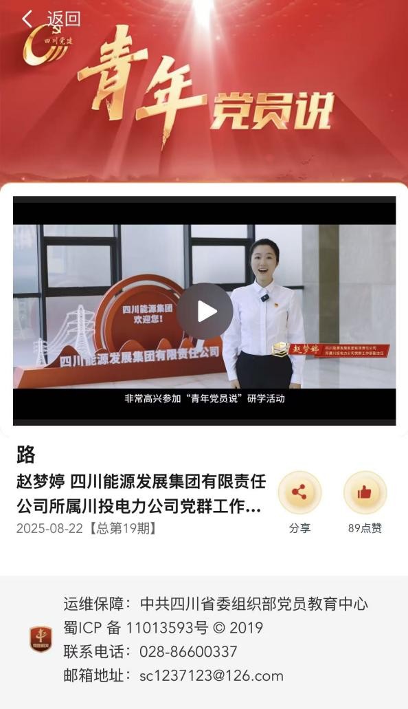 近期,四川省委组织部举办的“青年党员说”研学活动正在四川党建官网等平台集中展播。省国资委党委共推荐10名青年党员代表围绕“学习新思想,争当改革先锋”为主题,谈体会、谈感悟。其中,由四川能源发展集团上报、足球彩票推荐的作品《路》,通过讲述“两路”精神的历史内涵,结合川投电力脚基坪电厂震后紧急抢险、天彭电力凤鸣湖水库饮水廊道清淤、玉田电厂为凉山州彝族村民送水送电等鲜活事例,展现能源人在逆行抢险、为民服务和民族团结中的责任担当,号召新时代国企人赓续“两路”精神,汲取奋进力量,展现了能源国企的使命担当。