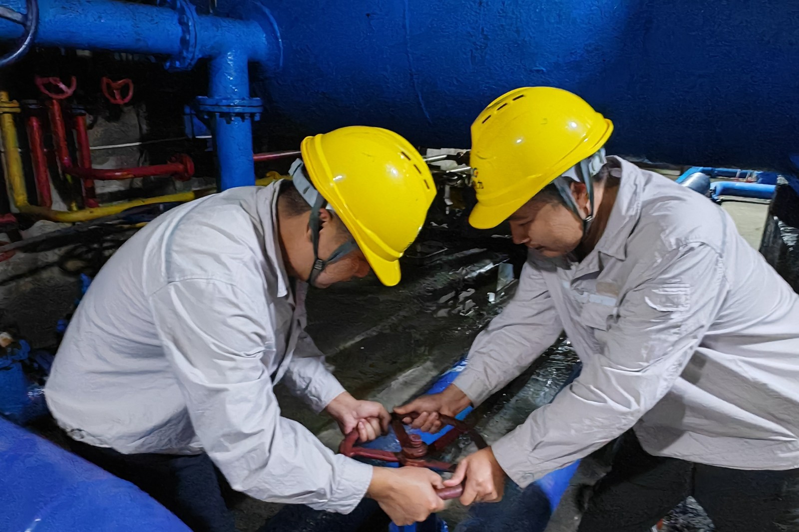 面对持续高温天气严峻考验,运维人员为保障机组、设备等的安全稳定运行也是夜以继日、殚精竭虑。勤巡视:不惧炎夏烈日主动增加设备巡检次数,密切关注设备温度、振动、异味等诸多细节,重点检查大电流设备的散热情况,特别是对机组冷却系统、主变压器各电气连接点等关键部位进行重点盯防,以高度责任心及时将设备缺陷查找消除在初起阶段。排缺陷:为解决洪水期间水质差降低冷却水系统工况的问题,运维人员认真做好冷却水水质、流量、温度检查及水压监测,根据水质情况即时调整冷却水压力,在水质较差时加大水压,并通过冷却水反冲等方式清理管道防范堵塞,必要时增设临时冷却装置,防止温度过高引发安全事故。通过多管齐下严密防范,主设备超温报警次数同比减少80%,保障主设备在40℃环境温度下仍能平稳运行,开得起、顶得上、稳得住。