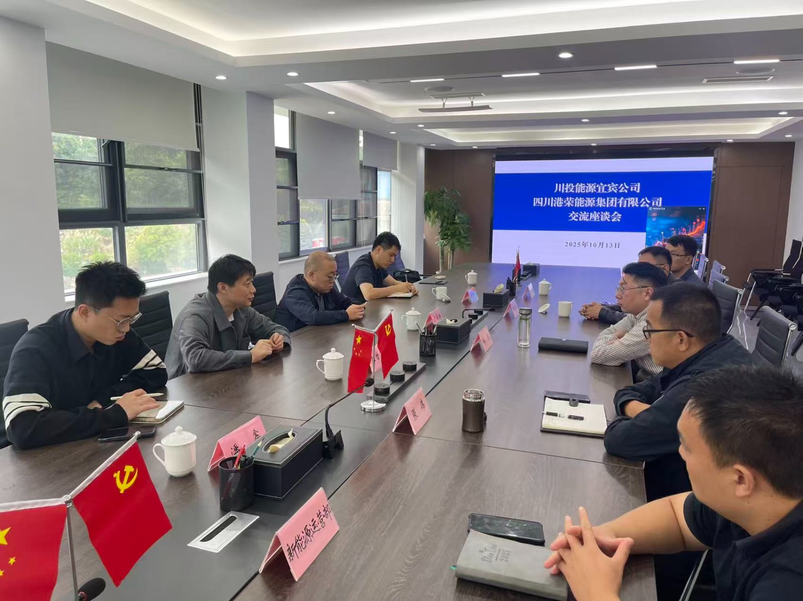 10月13日,攀新能源公司党支部副书记、副总经理、工会主席,足球彩票(宜宾)有限公司董事长郭梦夏一行赴四川港荣能源集团有限公司调研,双方开展交流座谈。港荣能源公司党总支副书记、总经理李貌出席并主持座谈会议。
