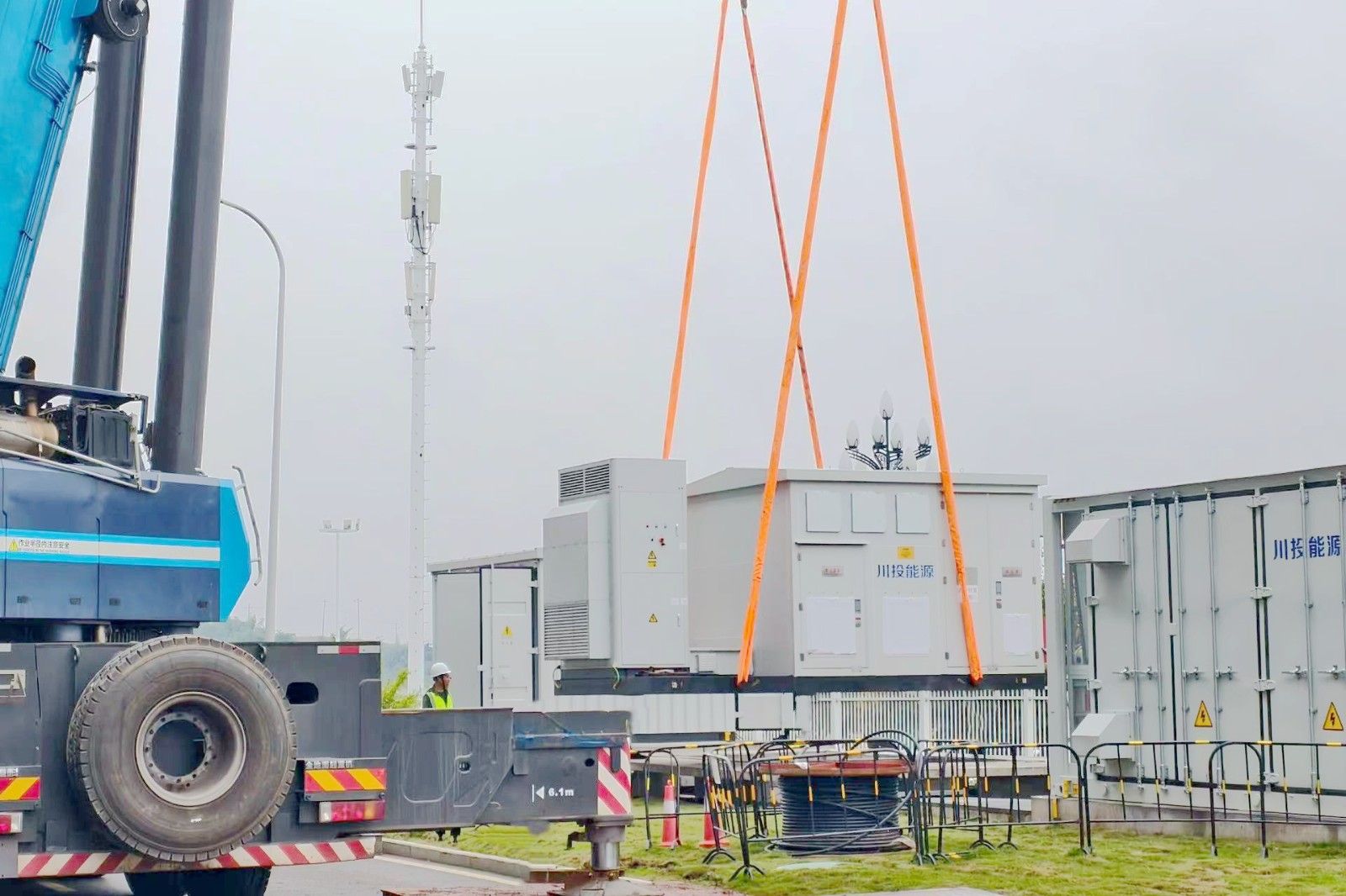 10月24日,四川时代60MW/120MWh工商业用户侧储能示范项目一期工程位于YB1、YB2厂区内储能设备(以下简称“四川时代项目”)正式启动吊装作业,作为项目建设的关键节点,储能设备的吊装标志着工程进入全面加速推进阶段。截至目前,项目已完成位于YB5、YB6厂区内储能设备吊装及相关工作,整体施工稳步有序推进。