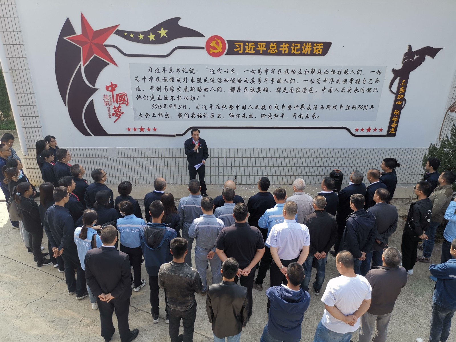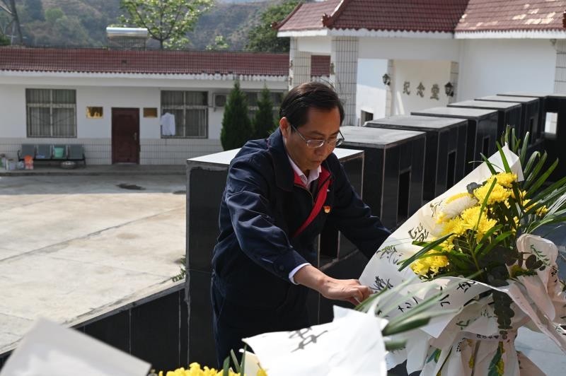 苍松翠柏掩映下革命烈士纪念碑巍然耸立,伴随着铿锵激昂的《义勇军进行曲》,全体人员齐声高唱中华人民共和国国歌。国歌唱毕,全场肃立,向革命英烈默哀致敬。之后,公司党总支副书记、总经理蔡承德带领全体党员重温了入党誓词。公司党总支书记、董事长徐孝刚代表全体人员向革命英烈敬献花篮,并驻足凝视、仔细整理花篮缎带。敬献花篮仪式结束后,全体人员对烈士纪念碑和烈士墓进行了祭扫,徐孝刚以《为了共同的事业》为题,背靠习近平总书记纪念抗日战争暨世界反法西斯战争胜利70周年大会讲话照壁,讲授了一堂生动的党史学习微党课。