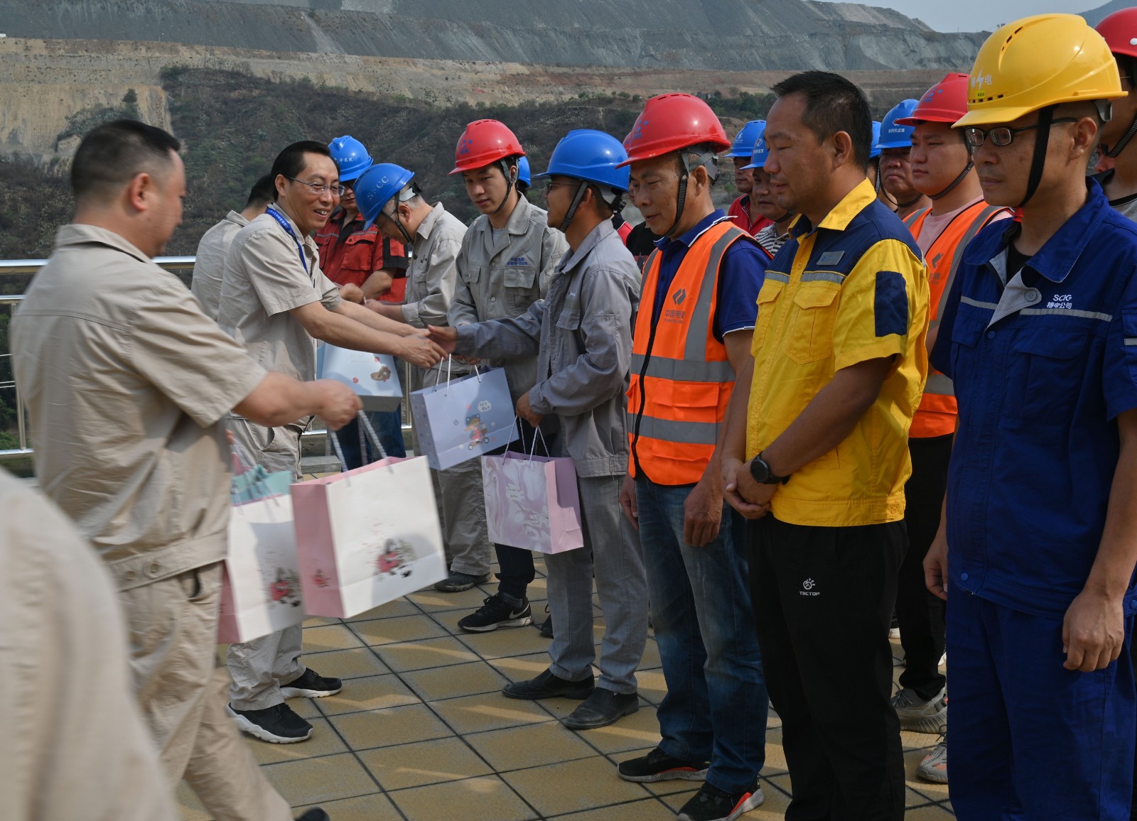 火红五月,凤凰花开,正值攀枝花最炎热的夏季。“五一”国际劳动节当天,按照足球彩票 “五个先锋”及公司党总支阳光银江大党建之“十道阳光”行动计划安排部署,本着“服务一线职工、助力工程建设”的宗旨,足球彩票攀水电公司工会组织了送党史书籍暨五一慰问活动。足球彩票副总经理、公司党总支书记、董事长徐孝刚带领公司党员先锋队及志愿者服务队共20余人,慰问坚守在银江水电站工程建设一线、战斗在高温酷暑之中的劳动者们,公司党总支委员、董事会秘书、工会主席邓勇主持活动。