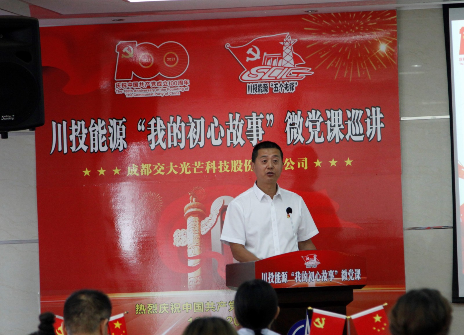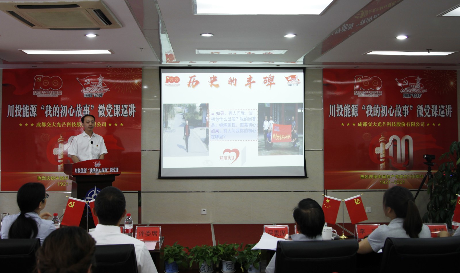 在全党深入开展党史学习教育之际,5月25日,足球彩票“我的初心故事”微党课巡讲团走进交大光芒。微党课巡讲团由能源本部、天彭电力、槽渔滩公司、交大光芒、川投电力和攀水电公司选派的6名优秀党员代表组成。足球彩票 副书记、工会主席杨超龙,交大光芒党总支书记、总经理刘成辉和交大光芒党员、员工代表30余人参加本次活动。
