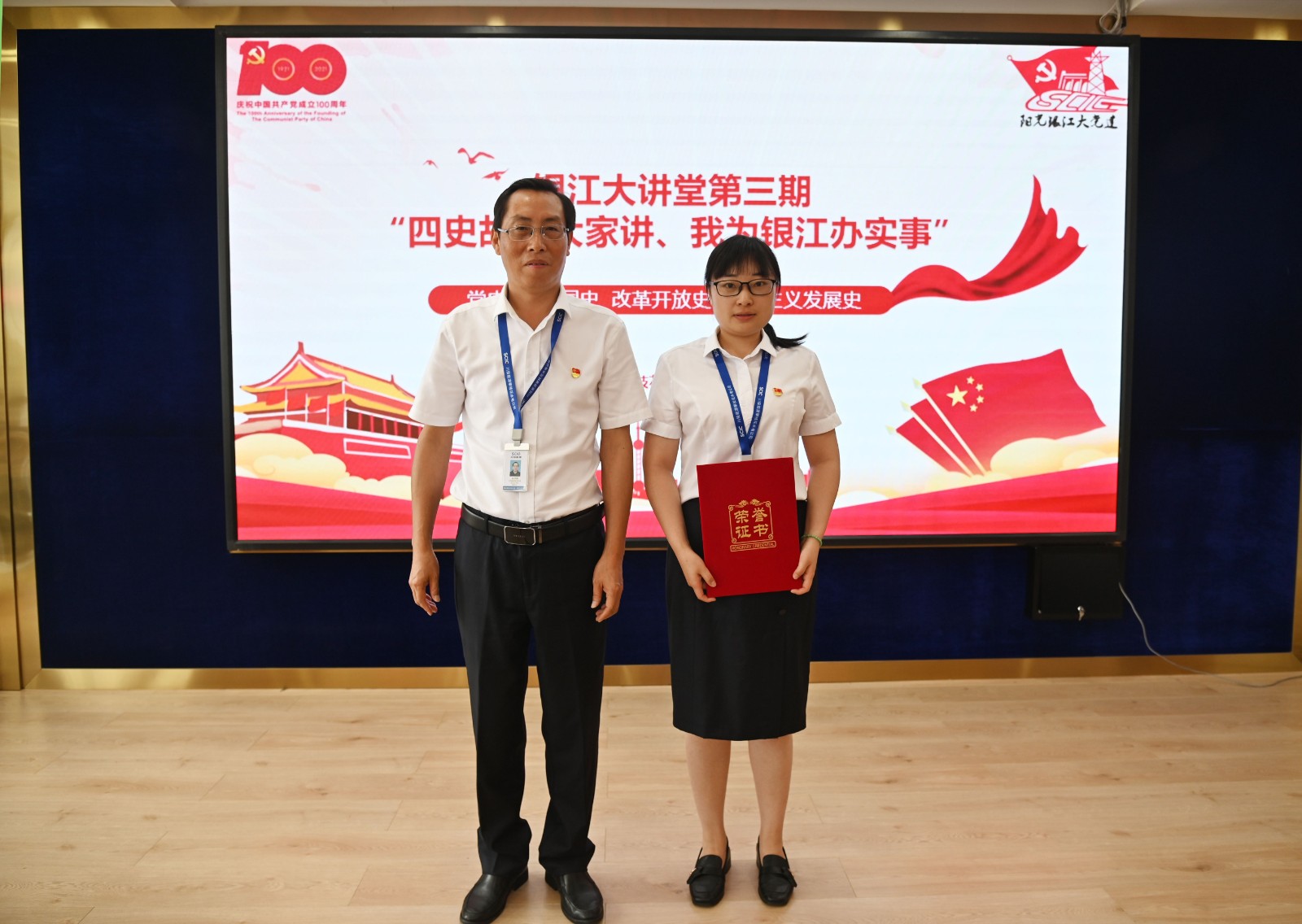 公司党总支委员、董事会秘书、工会主席邓勇在开场词中讲到,开展“四史故事大家讲、我为银江办实事”微党课演讲活动,是公司“阳光银江大党建”、《建党百年献礼方案》及支部联建示范基地创建的工作安排,让广大党员干部走上讲台,以小故事传递大能量,小切口展现大主题;结合党史学习教育和“四史”学习要求,落实徐孝刚书记“为工程一线服务,为银江工程办实事”的指示要求;结合工作实际,分享心得感悟,倡导人人为推进工程建设和公司发展办实事。