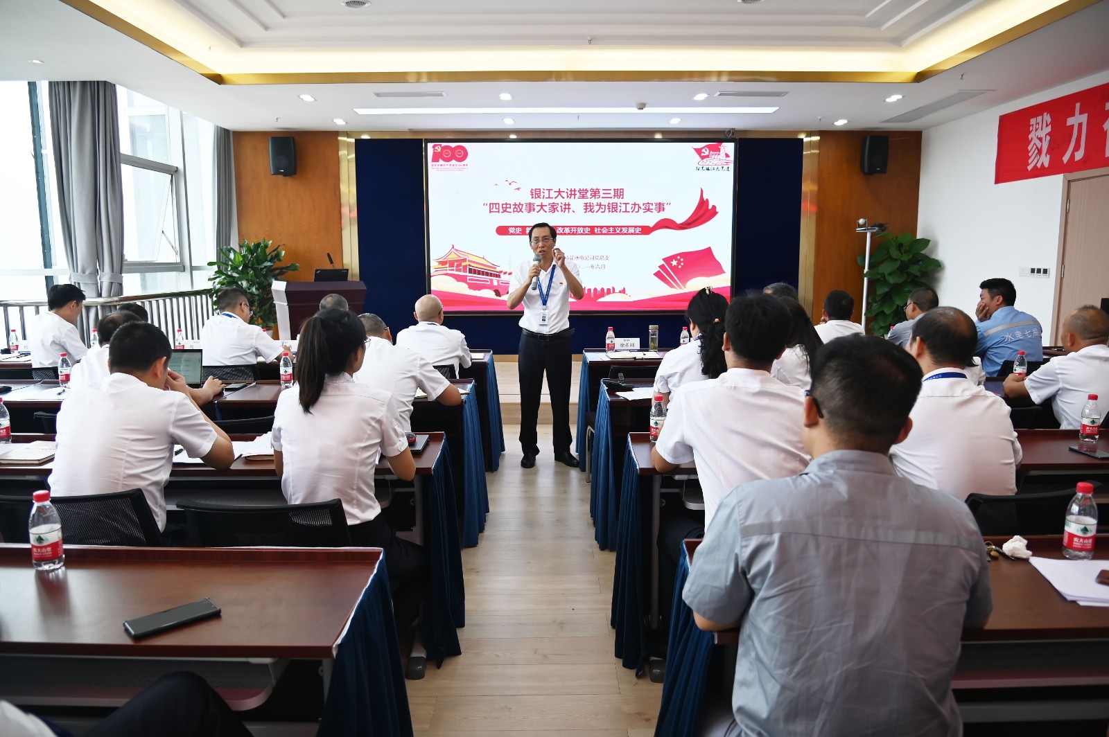 6月6日上午,足球彩票攀水电公司开展银江大讲堂第三期“四史故事大家讲、我为银江办实事”微党课演讲活动,为大家带来了一场别开生面的党史教育,公司及参建单位领导、全体党员职工、联建支部党员代表共50余人聆听了微党课。