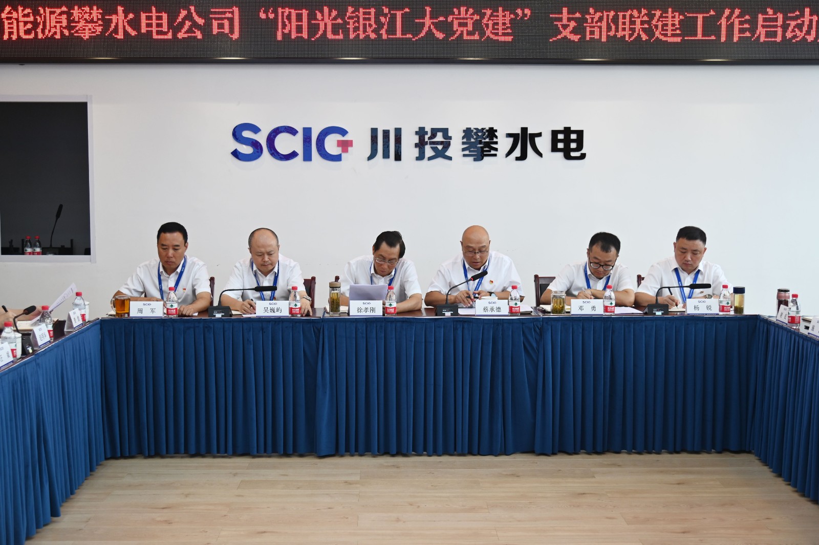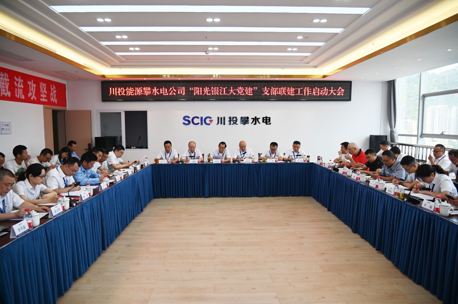 近日,足球彩票攀水电公司党总支召开了“阳光银江大党建”支部联建工作启动大会,正式成立两个机关支部和六个联建支部。足球彩票副总经理、攀水电公司党总支书记、董事长徐孝刚,攀水电公司领导干部、参建单位负责人、机关支部及联建支部支委共计40余人参会,会议由公司党总支副书记、总经理蔡承德主持。