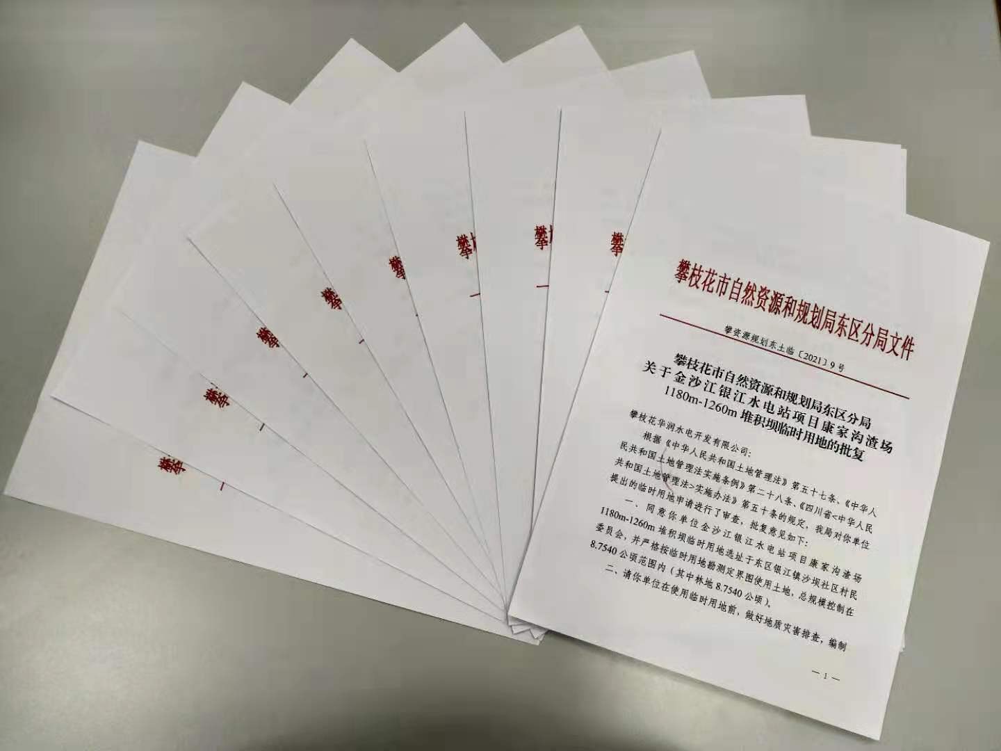 近日,足球彩票攀水电公司银江水电站项目临时用地手续,获得攀枝花市自然资源和规划局东区分局批复,同意按照有关规定提供97.3881公顷土地作为银江水电站临时用地。至此,银江水电站使用林地及建设用地已全部获得批准。