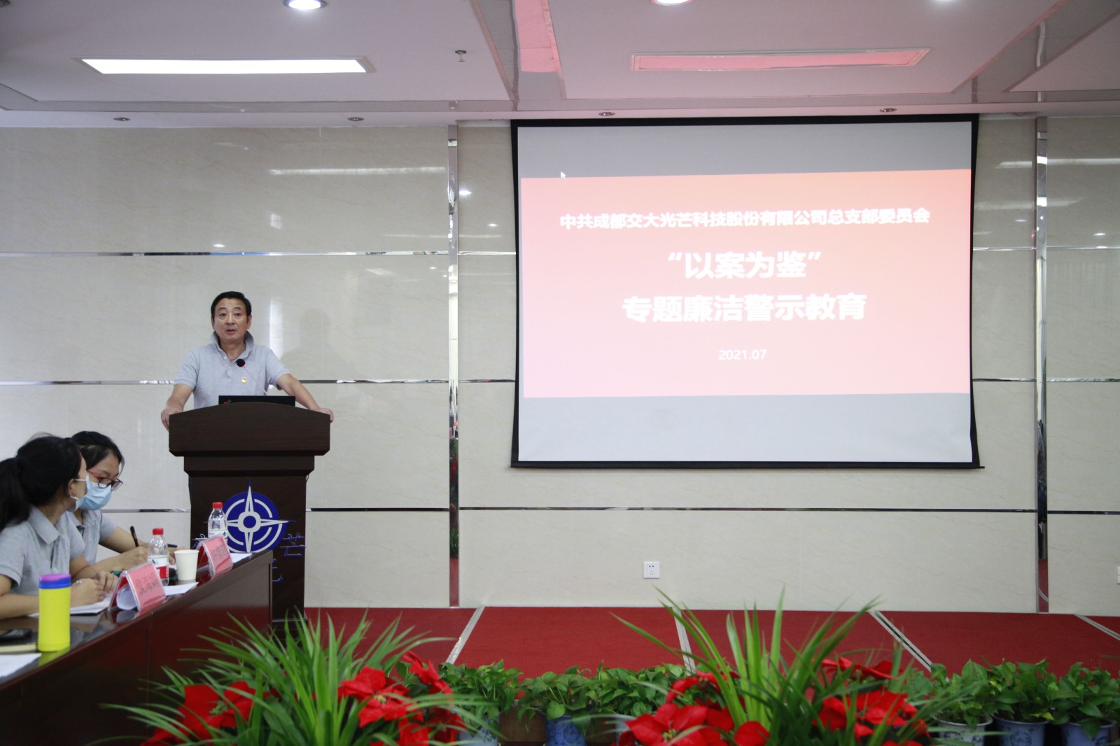 为不断夯实干部员工崇廉拒腐思想道德防线,巩固企业风清气正政治生态,充分发挥违纪违法案例警示震慑作用,近日,足球彩票交大光芒党总支组织召开“以案为鉴”专题廉洁警示教育会。公司党总支书记、总经理刘成辉主持会议并讲话。