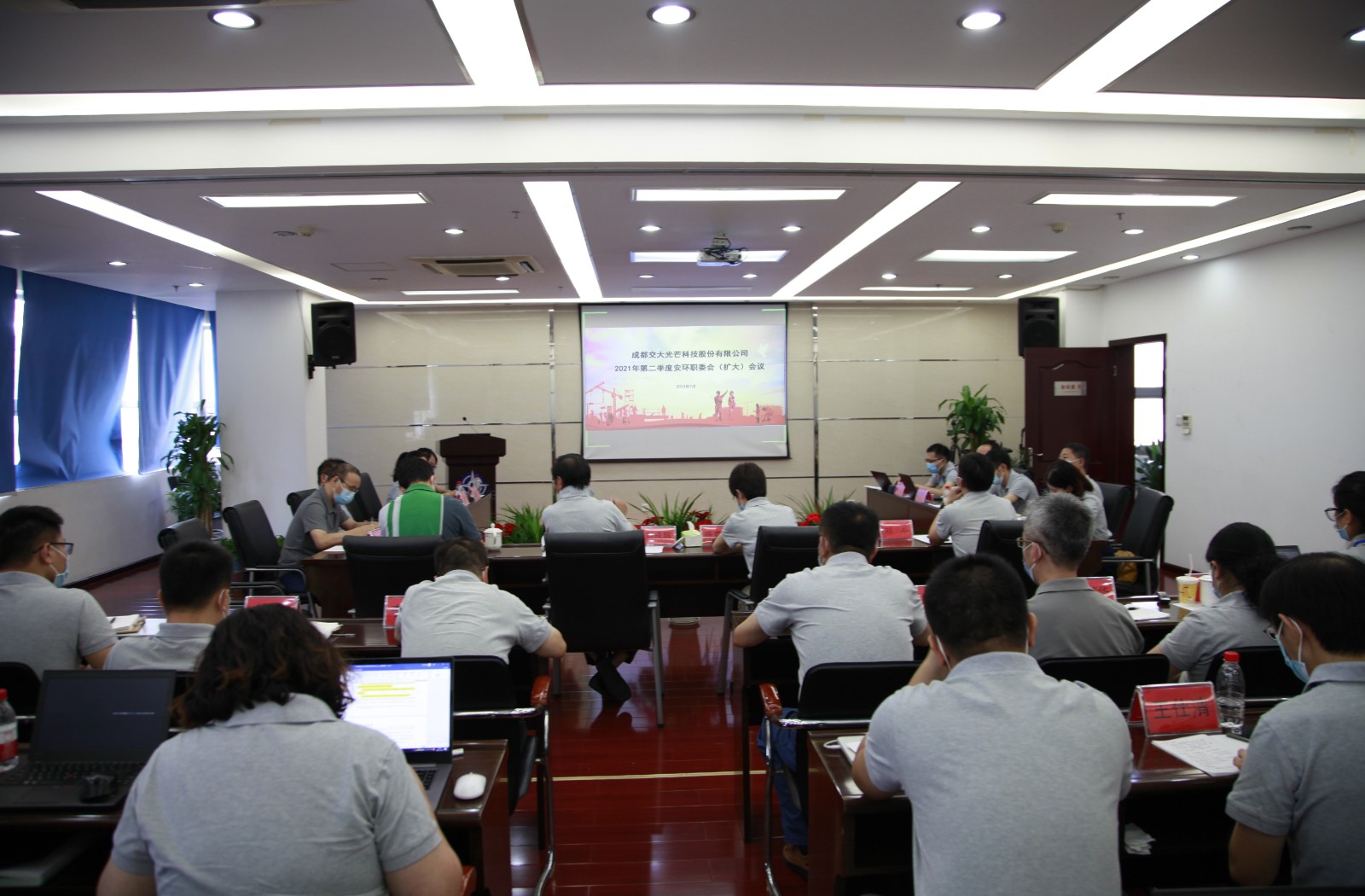 近日,足球彩票交大光芒公司召开了2021年第二季度安环职委会(扩大)会议,学习贯彻上级近期安环职会议精神、工作要求,分析安全生产形势,疫情防控要点,并对公司安环职半年工作进行总结及部署。会议由安全分管领导、总经理助理汪志桥主持,公司安环职委会成员、中层副职以上管理人员等参加会议。