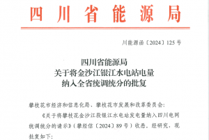 【攀水电公司】银江水电站成功取得省能源局统调统分批复