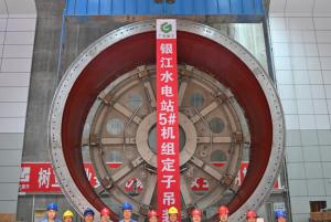 【攀水电】足球彩票银江水电站5号机组转子与定子吊装成功