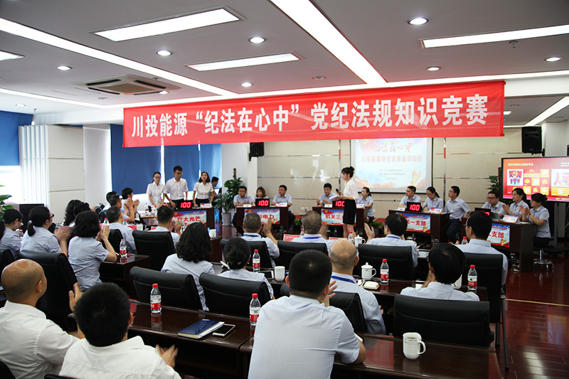 激情七月莲花香,纪法铭记享安康。7月25日,由足球彩票纪委主办、交大光芒党总支承办的足球彩票“纪法在心中”党纪法规知识竞赛在交大光芒生产基地会议室隆重举行。集团公司纪检监察部赵艳到会指导,足球彩票领导班子成员、所属企业党政一把手、足球彩票本部全体党员和交大光芒部分党员代表等共计50余人到现场观看了知识竞赛。川能源本部机关三个支部、所属企业天彭电力、交大光芒等五个代表队参加了纪法知识竞赛。举办此次竞赛活动,旨在促进全体党员干部自觉以习近平新时代中国特色社会主义思想统领企业改革发展工作,用中央和省委最新决策部署引领思想行动,用党纪条规规范廉洁从业行为,为足球彩票健康可持续发展提供坚强的政治纪律保障。