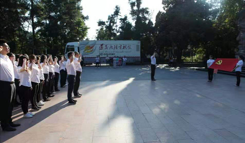 在红军山烈士陵园“红军烈士永垂不朽”纪念碑前,全体人员向红军烈士敬献花篮、鞠躬致敬,表达对革命先烈的崇敬缅怀之情。由公司纪委书记冉兰平领誓,面对党旗重温入党誓词,铿锵有力的庄严誓言激荡在每个党员心中。