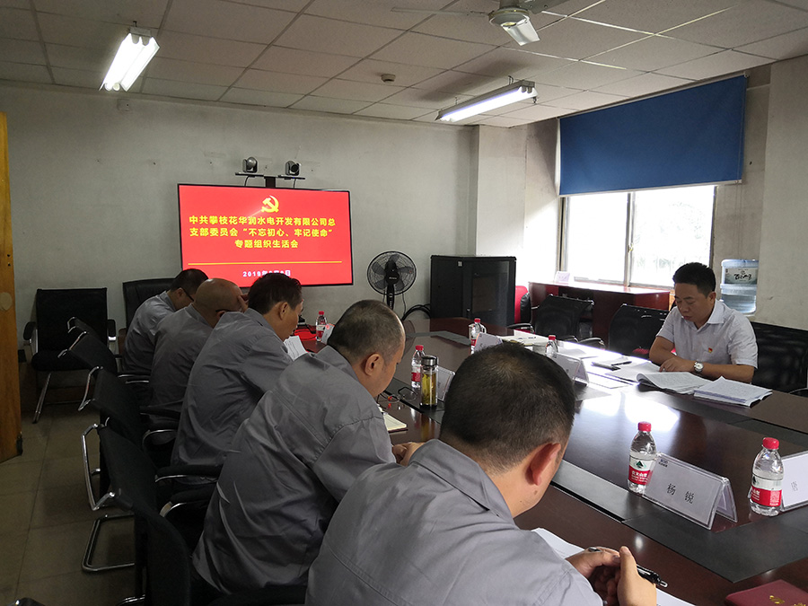 根据中央、省委、省国资委党委、集团公司党委和足球彩票 关于开展“不忘初心、牢记使命”主题教育有关要求,9月8日,攀枝花华润水电开发有限公司党总支召开专题组织生活会,足球彩票副总经理肖长青到会指导,攀枝花水电公司党总支书记、董事长徐孝刚主持会议,党总支班子成员参加会议。