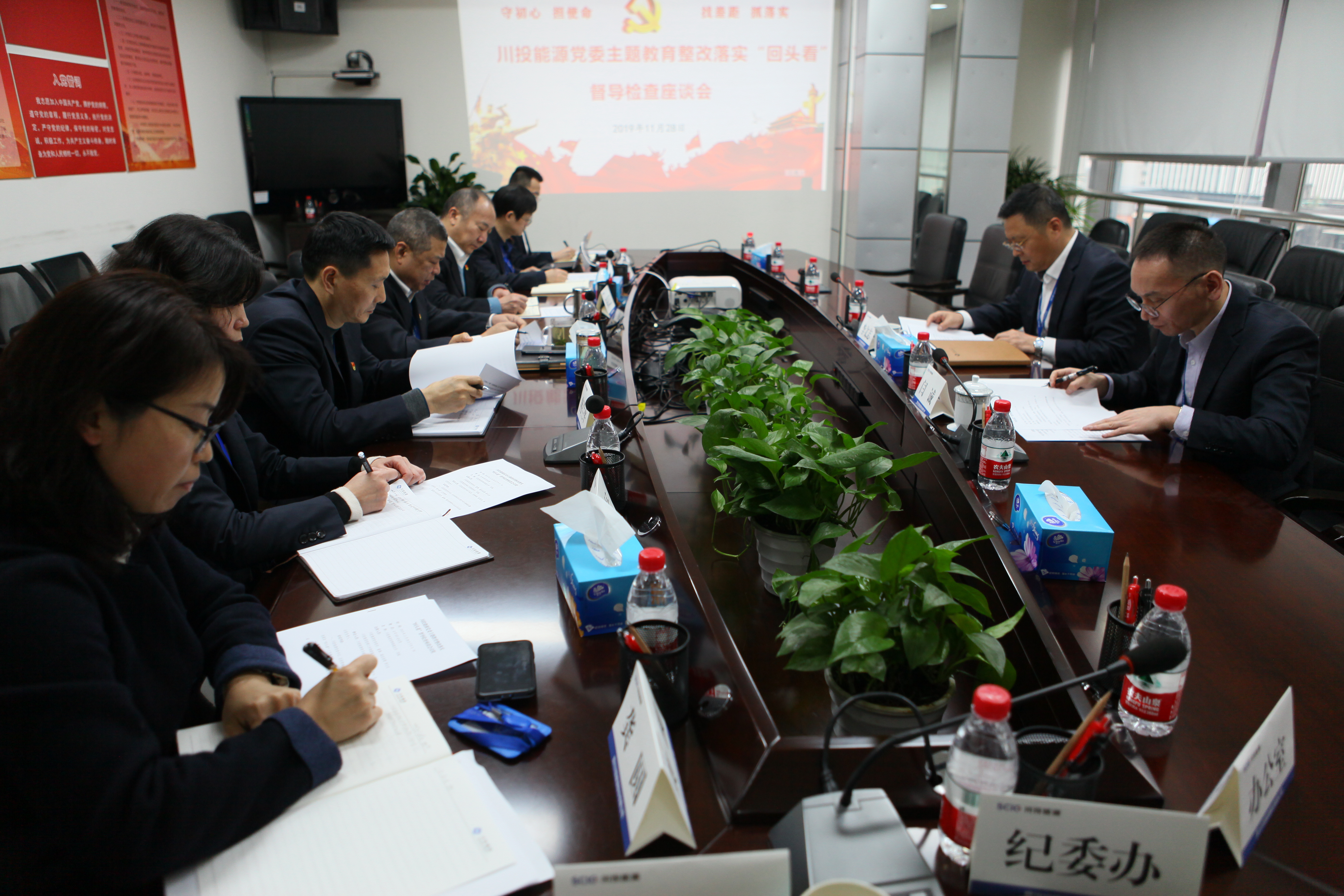 按照川投集团党委关于开展整改落实“回头看”工作的部署要求,11月28日,川投集团党委委员、董事、副总经理李文志到足球彩票督导检查“不忘初心、牢记使命”主题教育“回头看”工作。集团公司党群工作部副部长闫诚陪同督导,足球彩票领导班子成员、相关部门负责人参加会议。