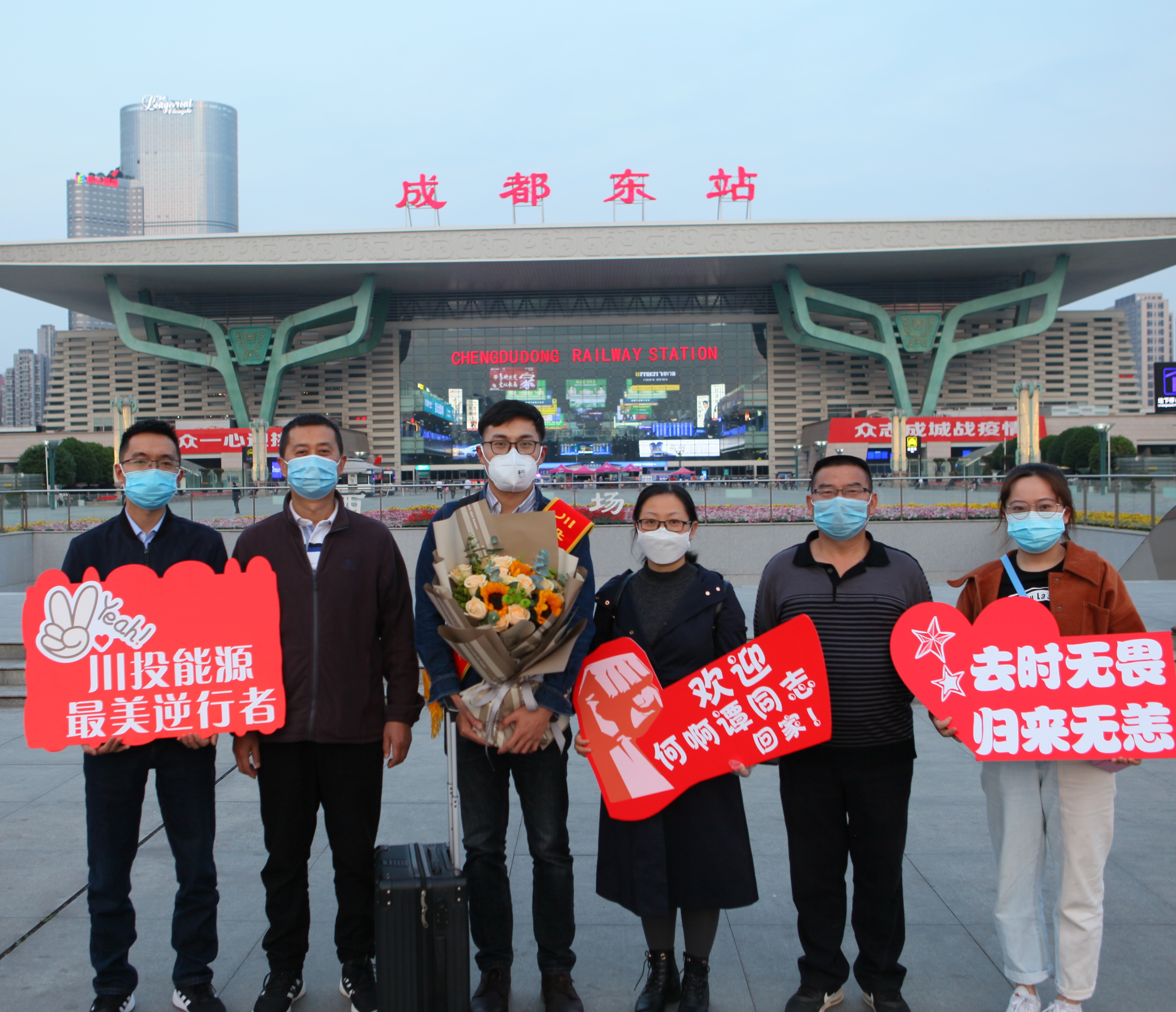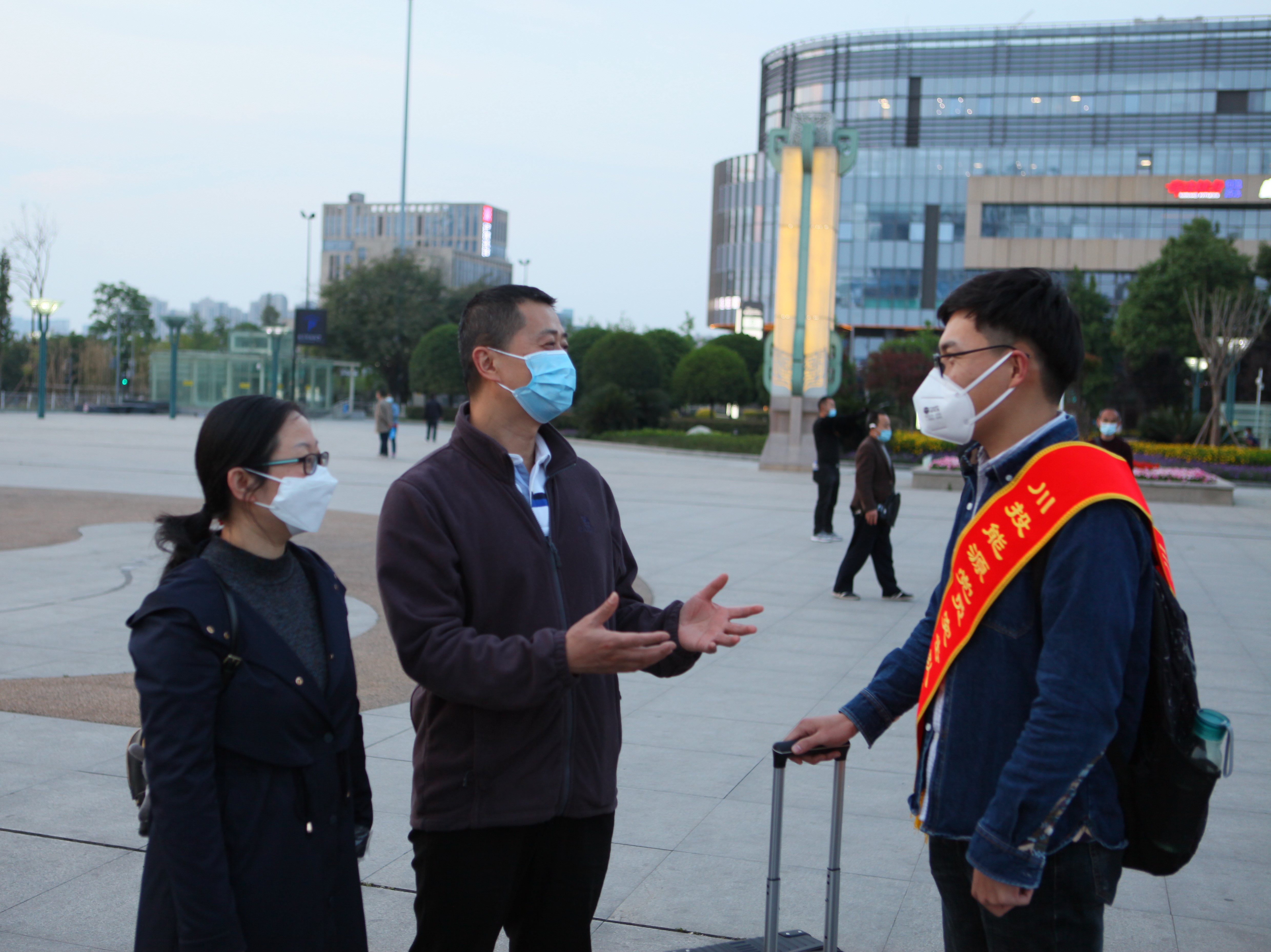 4月25日,足球彩票 “最美逆行者”、交大光芒工程突击队队员何啊潭同志圆满完成在武汉铁路局的值守任务,带着胜利和平安凯旋归来。足球彩票 副书记、工会主席杨超龙与党群工作部主任杨鑫以及交大光芒党总支委员汪志桥一道,手捧鲜花,到成都东站迎接足球彩票“最美逆行者”回家。