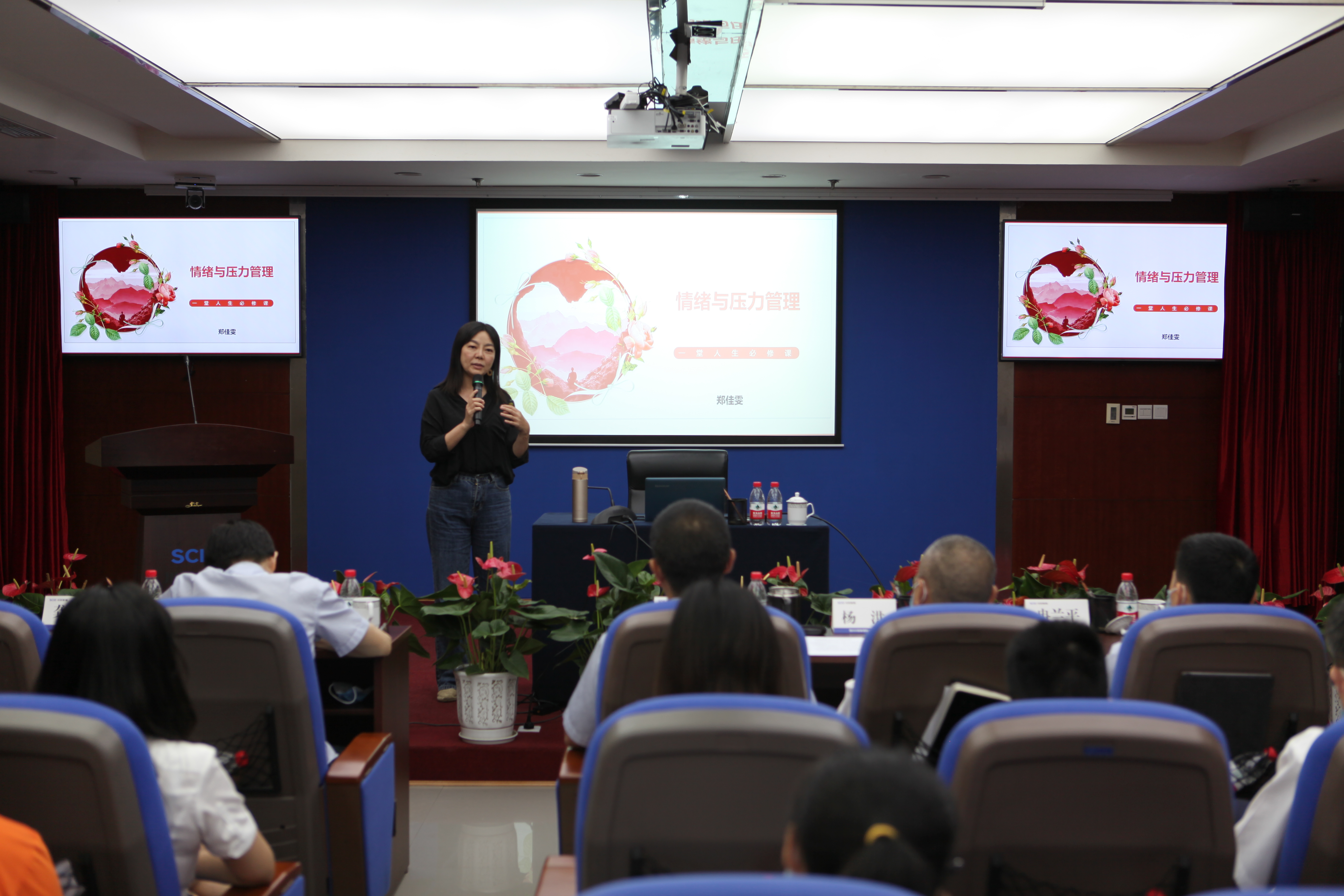 日前,为有效缓解公司员工工作压力,疏通堵点,赋能充电,足球彩票在川投大厦601会议室举行一场既生动又风趣的《情绪与压力管理》培训讲座,特邀国家注册二级心理管理师、国家注册音乐治疗师、国家心理学临床讲师郑佳雯老师授课,公司本部及所属公司通过现场与线下相结合方式共100余人参加学习。