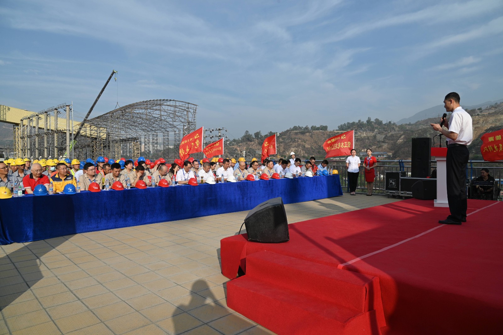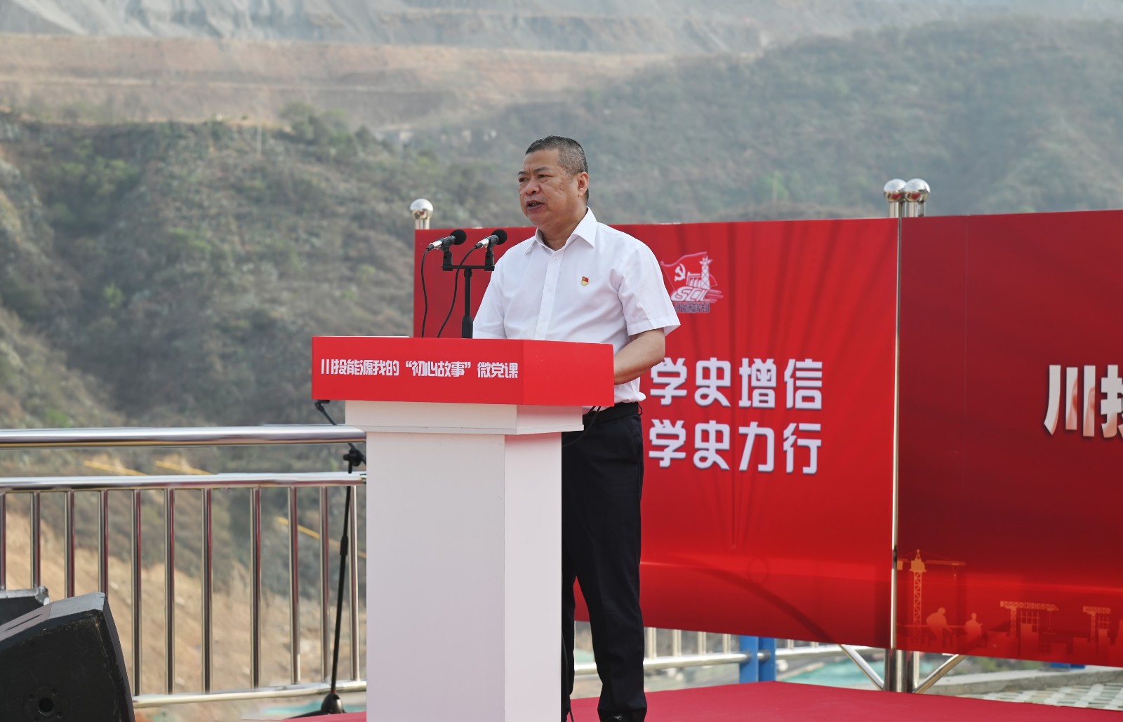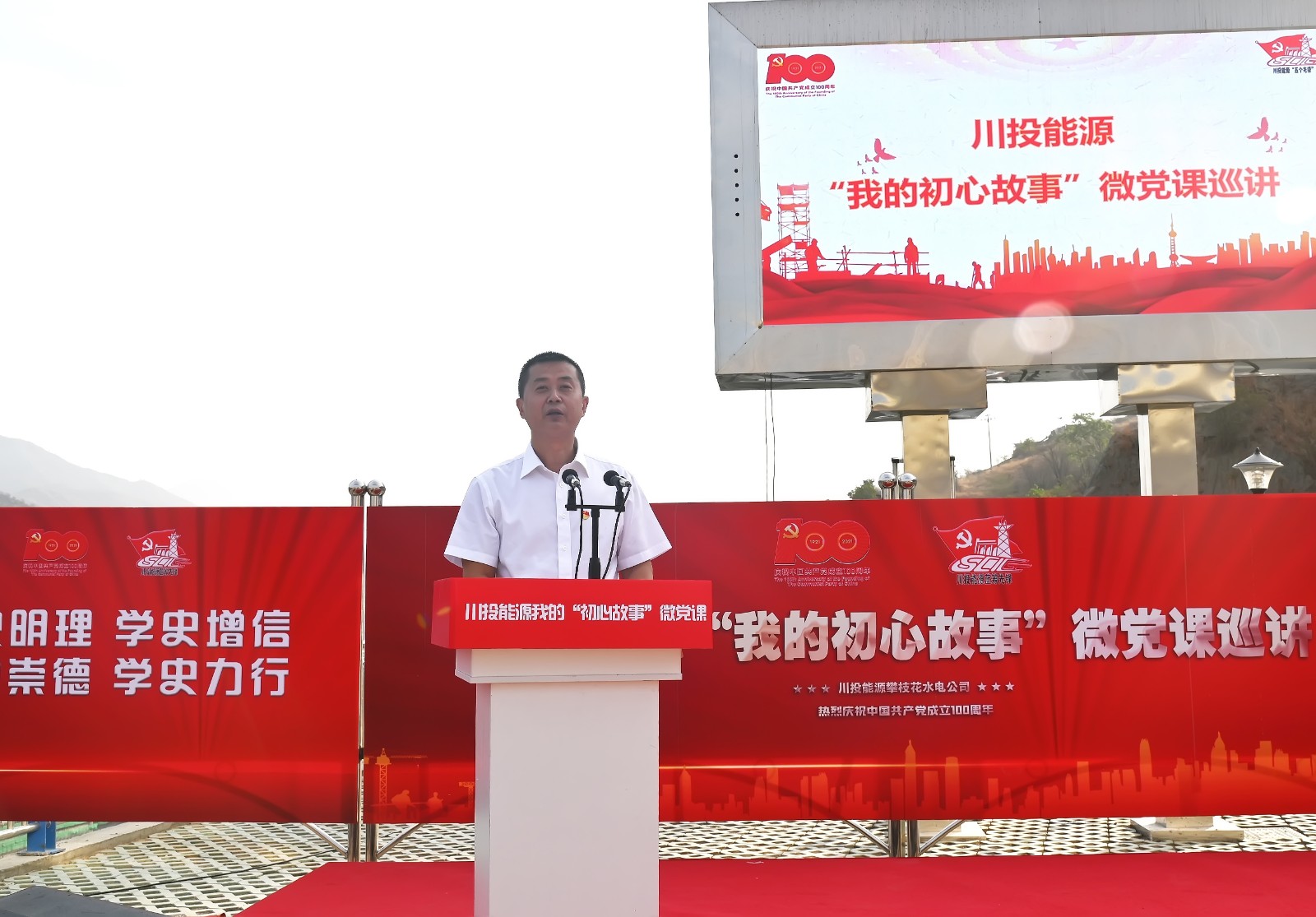 5月19日上午,足球彩票“我的初心故事”微党课巡讲团首站来到银江水电站工地现场,为攀水电及各参建单位党员代表100余人带来了一场红色励志的“视听盛宴”。公司党委书记、副董事长、总经理杨洪,党委副书记、工会主席杨超龙,副总经理、攀水电公司党总支书记、董事长徐孝刚及各参建单位负责人参加现场巡讲。